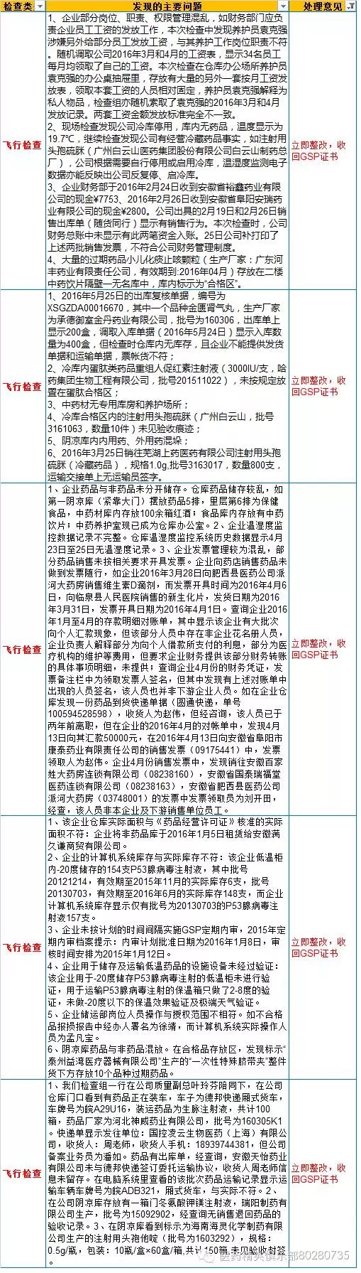 我們比對公告,統(tǒng)計匯總分析,主要是因為下述發(fā)現(xiàn)的問題導致涉藥單位被要求整改與立案查處。因此我們也可以清楚的看到那些問題需要整改,那些問題被立案,甚至收回GSP證。