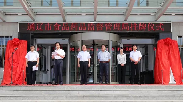 6月15日上午,內(nèi)蒙古通遼市政府在市食品藥品檢驗所隆重舉行了通遼市食品藥品監(jiān)督管理局成立揭牌儀式(注:從“三合一”中脫離了)。