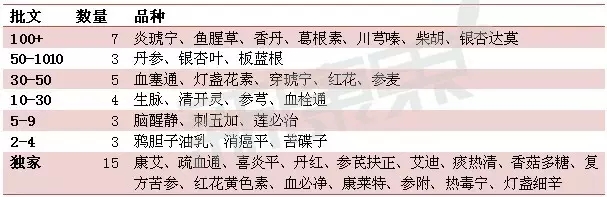 40種常見中藥注射劑批文數(shù)量統(tǒng)計
