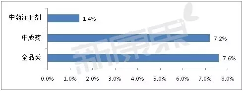 2015年中藥注射劑、中成藥以及全品類終端銷售規(guī)模增長情況