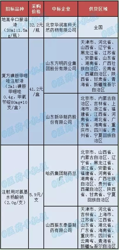 1、地高辛口服溶液(30ml:1.5mg/瓶)的采購(gòu)價(jià)格為32.2元/瓶,中標(biāo)企業(yè)為北京華潤(rùn)高科天然藥物有限公司。