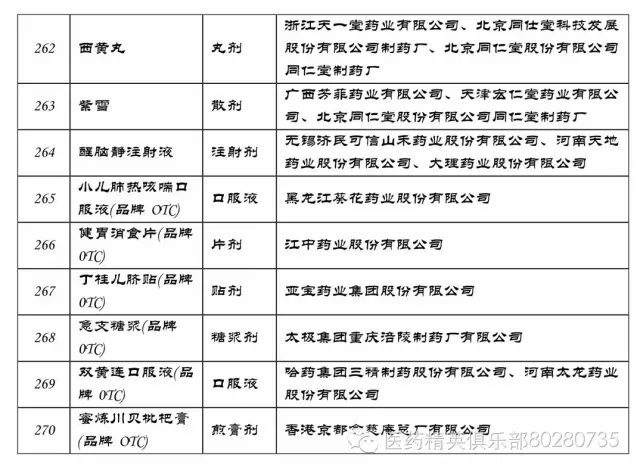 (2)行業(yè)協(xié)會(huì)提供的對(duì)市場(chǎng)影響較大、社會(huì)敏感度較高的品牌OTC藥品;
