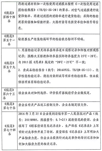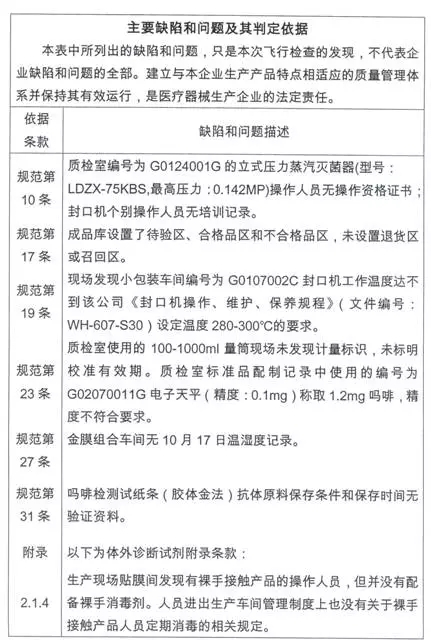 貴州天使醫(yī)療器械有限公司現(xiàn)場檢查缺陷表