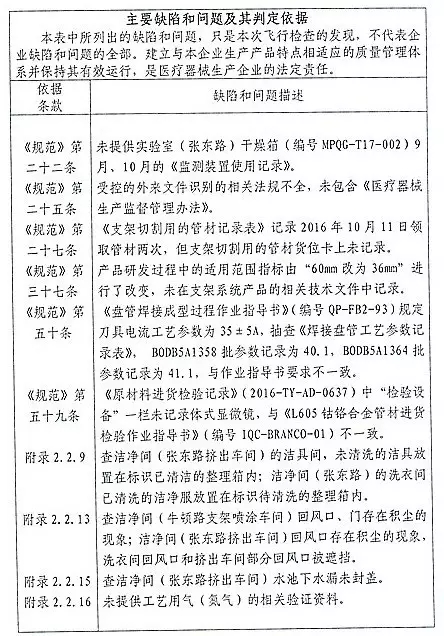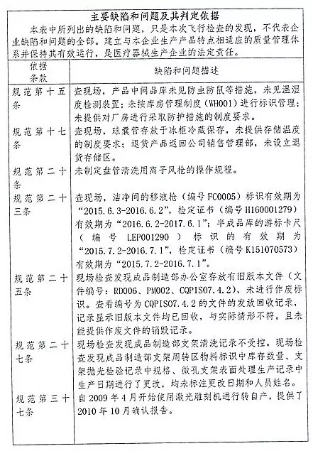 上海微創(chuàng)醫(yī)療器械(集團)有限公司現(xiàn)場檢查缺陷表