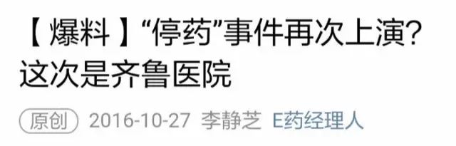 2016 年 10 月底,濟(jì)南兩家媒體轉(zhuǎn)載《E 藥經(jīng)理人》雜志的報(bào)道,稱當(dāng)?shù)厣綎|大學(xué)齊魯醫(yī)院多個(gè)藥品斷供。