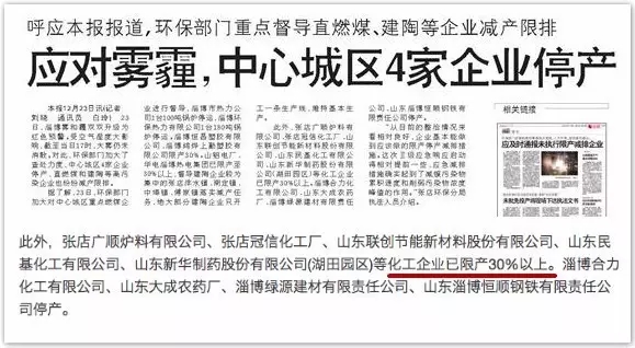 健識(shí)君注意到,霧霾逐漸加重后,污染企業(yè)停產(chǎn)、限產(chǎn)是重要治污手段。去年,霧霾嚴(yán)重的情況下,山東新華制藥股份有限公司(湖田園區(qū))等化工企業(yè)已限產(chǎn)30%以上,隨著霧霾逐漸加重,是否會(huì)有越來(lái)越多企業(yè)因霧霾被停產(chǎn)、限產(chǎn),健識(shí)局會(huì)進(jìn)一步關(guān)注。