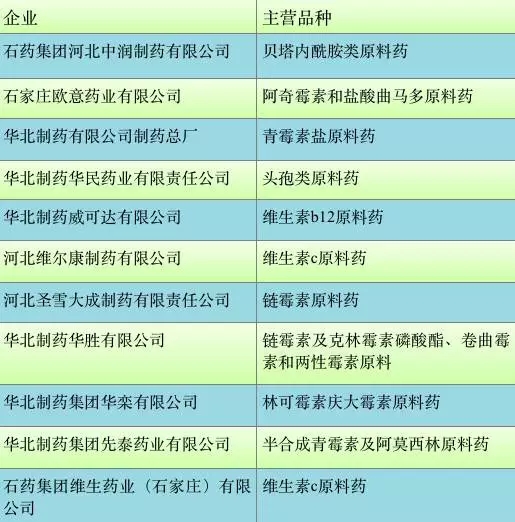 下面是被列入停產(chǎn)名單的石家莊原料藥企業(yè)及其主要品種,里面有您的供應(yīng)商嗎?