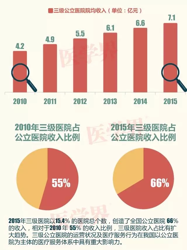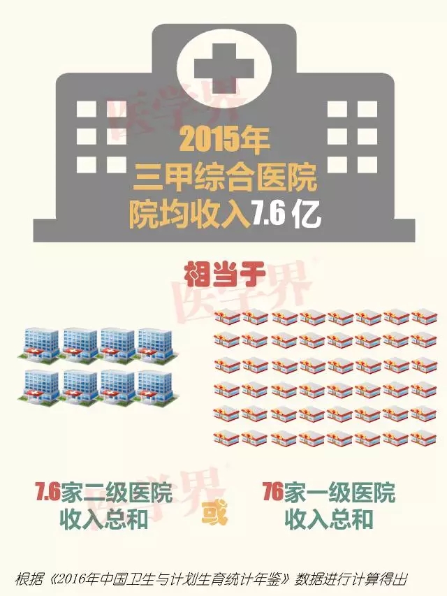截至2015年年末,中國一共有1236家三甲醫(yī)院,占中國醫(yī)院總數(shù)極小比例的三甲醫(yī)院卻貢獻了醫(yī)療總收入中的很大份額。醫(yī)學界智庫用數(shù)讀圖說的方式來揭示三甲醫(yī)院營收那些事。