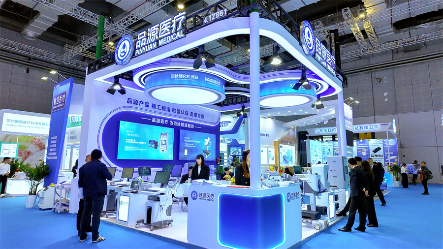 品源醫(yī)療本次展位設(shè)計(jì)簡(jiǎn)約專業(yè)、布局清晰,劃分為產(chǎn)品展示區(qū)、體驗(yàn)互動(dòng)區(qū)、商務(wù)洽談區(qū)三大功能區(qū)域,五大系列產(chǎn)品整齊陳列,全方位展現(xiàn)品牌技術(shù)實(shí)力與臨床應(yīng)用價(jià)值。