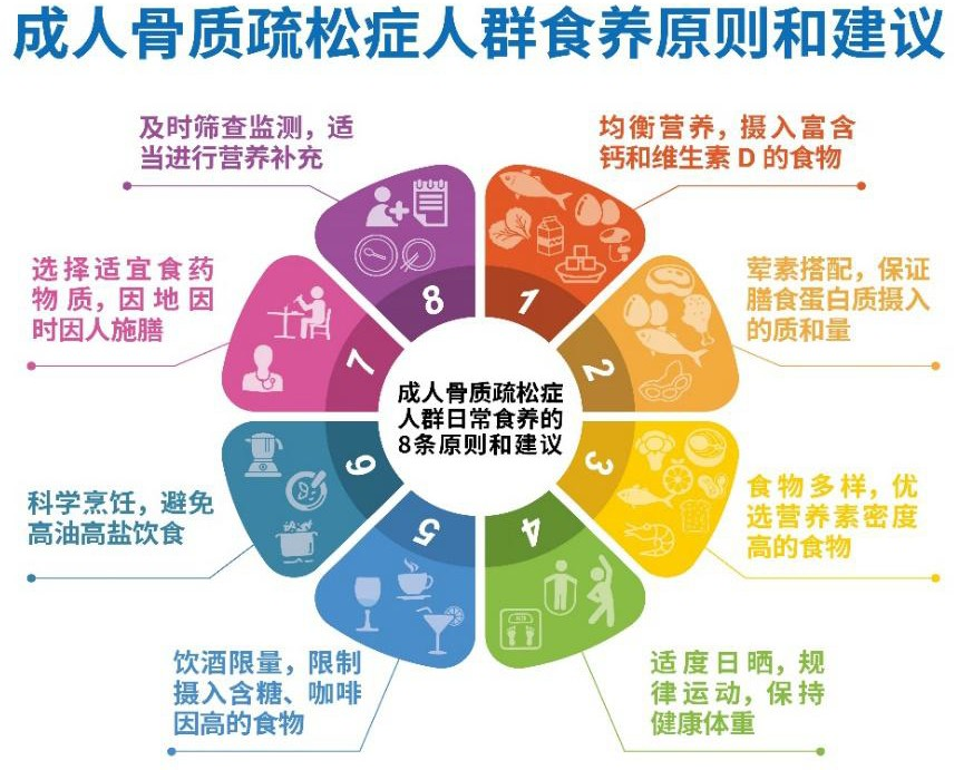食養(yǎng)指南聯(lián)合現(xiàn)代營養(yǎng)學(xué)和傳統(tǒng)食養(yǎng)中西醫(yī)的優(yōu)勢,將食藥物質(zhì)、新食品原料納入合理膳食體系,針對不同季節(jié)、地域及人群提供營養(yǎng)健康指導(dǎo)和食譜套餐示例,增強(qiáng)膳食建議的實(shí)用性和可操作性。對骨質(zhì)疏松癥人群的日常食養(yǎng)提出 8 條原則和建議。