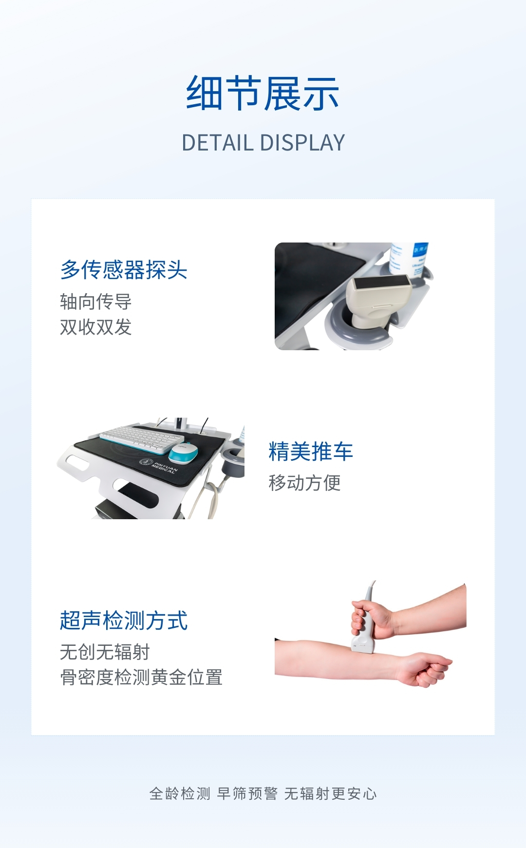 產(chǎn)品在醫(yī)生指導(dǎo)下,適用于受試者橈骨、脛骨骨密度或骨強(qiáng)度進(jìn)行檢驗(yàn)。