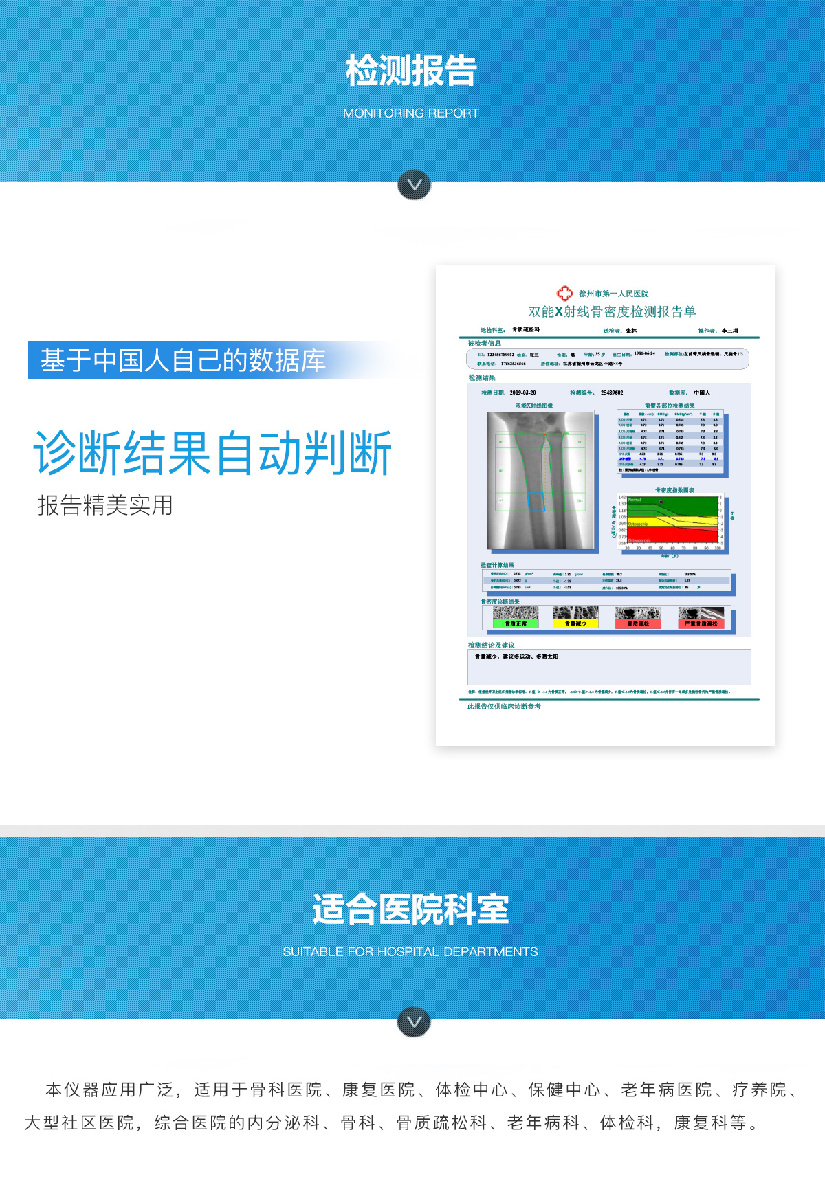 產品用途:本儀器應用廣泛,適用于骨科醫(yī)院、康復醫(yī)院、體檢中心、保健中心、老年病醫(yī)院、療養(yǎng)院、大型社區(qū)醫(yī)院,綜合醫(yī)院的內分泌科、骨科、骨質疏松科、老年病科、體檢科,康復科等。